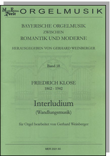 Friedrich Klose (1862-1942) BAYERISCHE ORGELMUSIK ZWISCHEN ROMANTIK UND MODERNE - Band 18 Interludium (Wandlungsmusik) bearbeitet f&uum;r Orgel von Gerhard Weinberger |